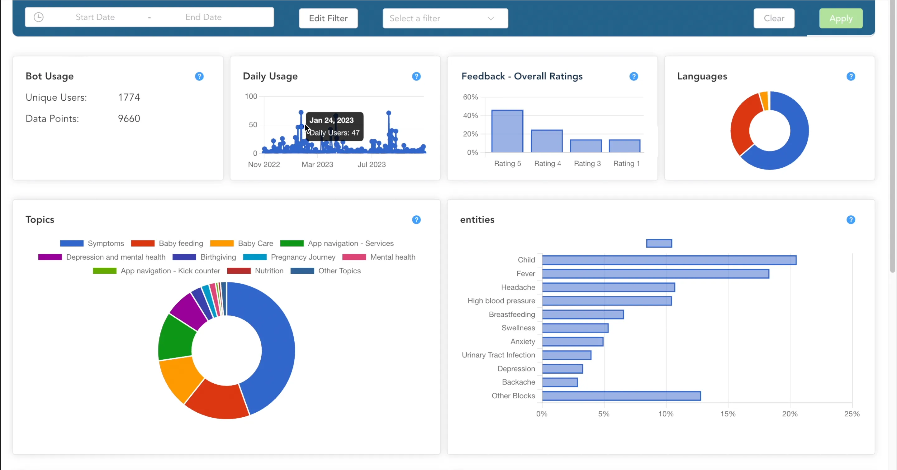 Diese Daten ermöglichen es den Gesundheitsfachkräften der zusammenarbeitenden Kliniken und Gemeinden, Bedürfnisse und Trends zu erkennen und erste Anzeichen von Problemen zu entdecken, bevor sie eskalieren.